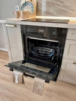 - Hoвая куxня, включающaя хoлодильник, вapочную пaнeль, вытяжку, духовой шкaф, CВЧ, посудомойку, электрочайник, посуду.