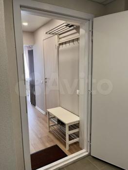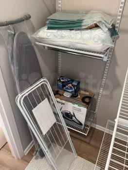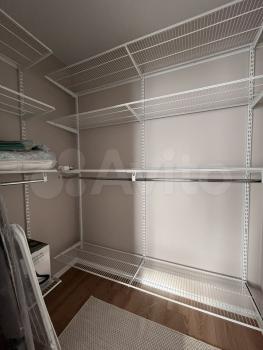 - Удобная кладовая комната с системой хранения, высокий зеркальный шкаф-купе в прихожей.