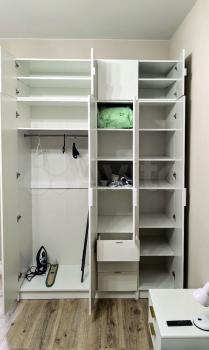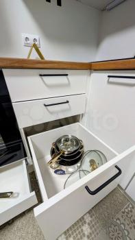Я обустраивала квартиру для себя, поэтому здесь всё качественное и новое: мощная вытяжка, духовка, электроплита, стиральная машина, холодильник, микроволновка, чайник, телевизор. Имеются: пылесос, утюг, сушилка для белья, гладильная доска, ростовое зеркало-обувница. На кухне установлена лампа с регулируемой мягкой подсветкой — можно создать "свою" атмосферу.
