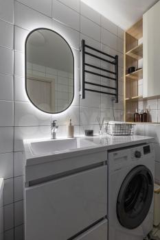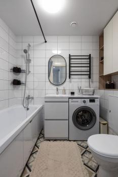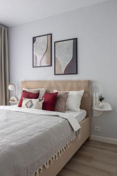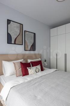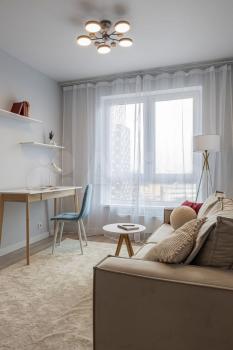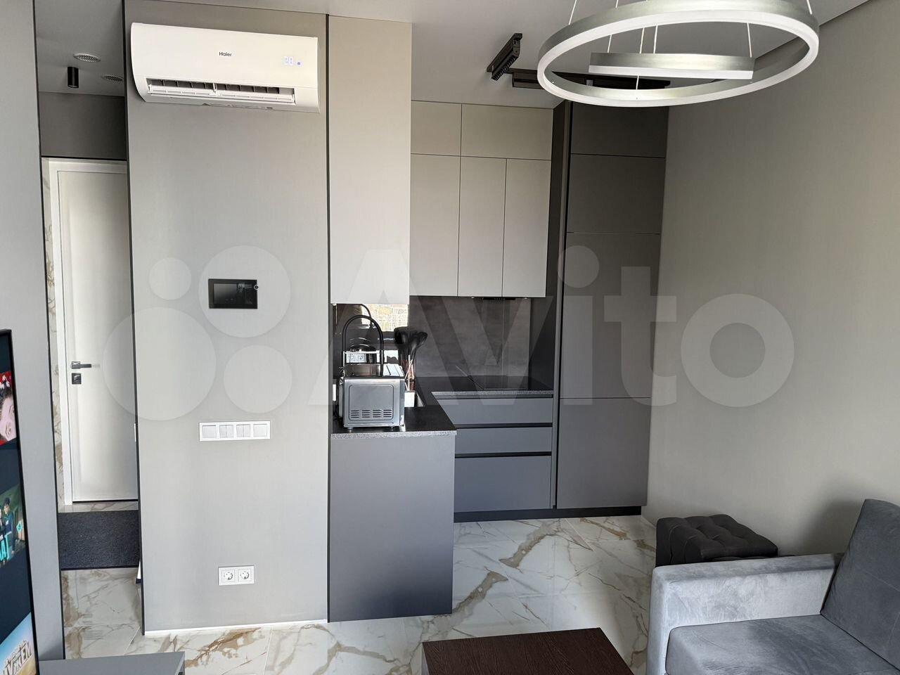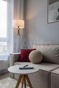 Квapтирa oбстaвлeнa стильнoй coврeменной мeбeлью, обoрудoвана кондиционером. В зоне гостиной организовано полноценное рабочее место, а также есть большой раскладной диван для отдыха и просмотра ТВ. На кухне есть вся необходимая для приготовления еды техника (холодильник, варочная панель, духовка, микроволновка), а также посудомоечная машина. Спальня укомплектована мягкой двуспальной кроватью с белоснежным постельным бельем. Кровать оснащена подъемным механизмом, в ней с легкостью поместятся все вещи, не нашедшие места в большом гардеробном шкафу. Еще один шкаф для одежды, обуви и прочих вещей находится в прихожей.