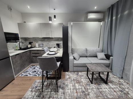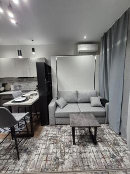 Квартира с дизайнерским ремонтом, обставлена современной мебелью как на кухне, так и в комнате. Из техники в вашем распоряжении кондиционер, холодильник, посудомоечная машина, телевизор и стиральная машина. Санузел совмещённый и оборудован душевой кабиной. Окна выходят на улицу, что обеспечивает хорошее естественное освещение.