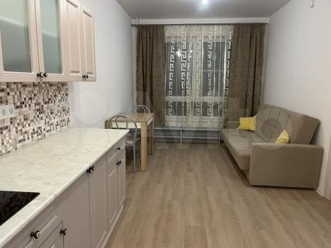 Полноценная 1-комнатная квартира с двумя окнами, новая в новом доме, с новой мебелью и техникой: стиральная машина, варочная панель, диван, кровать, шкаф в комнате, шкаф в прихожей, стол, два стула, две журнальные тумбы, кухонный гарнитур, холодильник и микроволновка в доставке.
