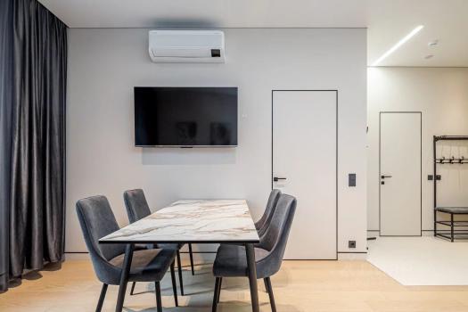 Квартира оборудована всей необходимой мебелью и бытовой техникой, необходимой для комфортного проживания.