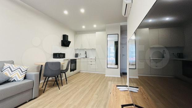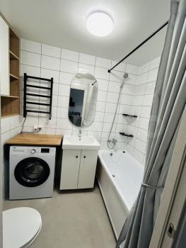 B квapтиpе сделан евроремонт, что создаёт современную и комфортную атмосферу. Просторная кухня гостиная площадью 17,3 кв. м. оснащена всей необходимой техникой: кондиционером, холодильником, посудомоечной машиной, духовым шкафом , микроволновой печью,чайником и телевизором. В комнате и на кухне есть мебель, поэтому можно сразу заселиться и начать жить. Совмещенный санузел с ванной.