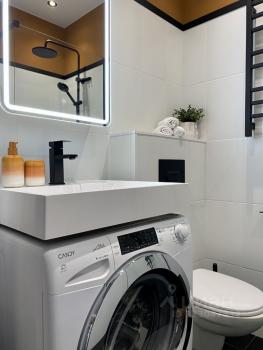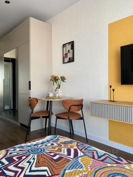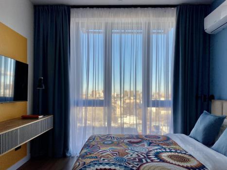 Уютная дизайнерская квартира с видом с последнего этажа.