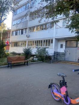 Есть бесплатная парковка около дома со стороны черного входа, там же Детская площадка и школа, рядом магазины. Квартира находится в тамбуре, есть вторая дверь.