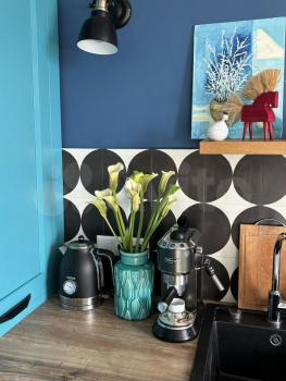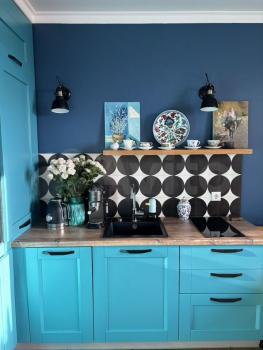 Эксклюзивный ремонт: Авторский дизайн-проект, качественные материалы, стилистическая целостность и внимание к деталям. Интерьер дополнен картинами известных современных художников.