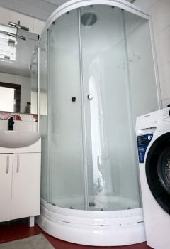 санузел - совмещённый, мебель - кухня, хранение одежды, спальные места, холодильник, плита, стиральная машина.