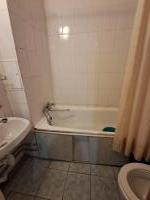 Кухня компактная, оборудована газовой плитой и обеденной зоной. Санузел совмещенный, оформлен в светлых тонах. В комнате установлен телевизор.