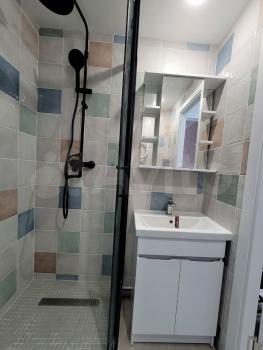 Санузел совмещенный, оформлен современной плиткой, оснащен душевой кабиной. В подъезде установлены два пассажирских лифта.