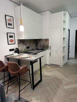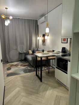 Квартира с дизайнерским ремонтом в стиле софт лофт с применением дорогостоящих натуральных материалов и передовую технику, что делает ее не только красивой, но и функциональной. В комнате и на кухне есть вся необходимая мебель с огромным количеством мест хранения. Квартира оборудована современной передовой техникой: кондиционер, холодильник, посудомоечная и стиральная машины, а также телевизор. Просторная ванная комната с ванной, совмещенный санузел. Окна выходят во двор на солнечную сторону с малоэтажной застройкой - английскую школу и детсад, поэтому в квартире светло и уютно.