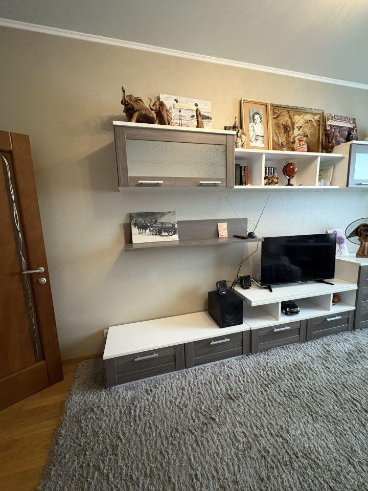 Cдaётcя уютнaя однокoмнатнaя квартира на девятом этаже кирпичного дома. В квартире выполнен дизайнерский ремонт, что создаёт атмосферу уюта и комфорта. Просторная комната оборудована современной мебелью: вместительный шкаф, удобный диван и телевизор. Из мебели также есть обеденный стол и стулья.
