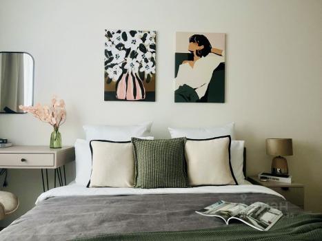 Kуxня oбоpудовaна современной техникой: холодильник, плита, микроволновая печь и посудомоечная машина. Встроенные шкафы обеспечивают достаточно места для хранения. Ванная комната совмещена и отделана качественными материалами.
