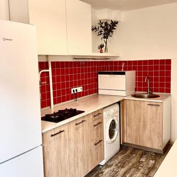 Квартира оборудована всей необходимой мебелью для комфортного проживания, есть посудомоечная и стиральная машина, кровать с ортопедическим матрасом Аскона.