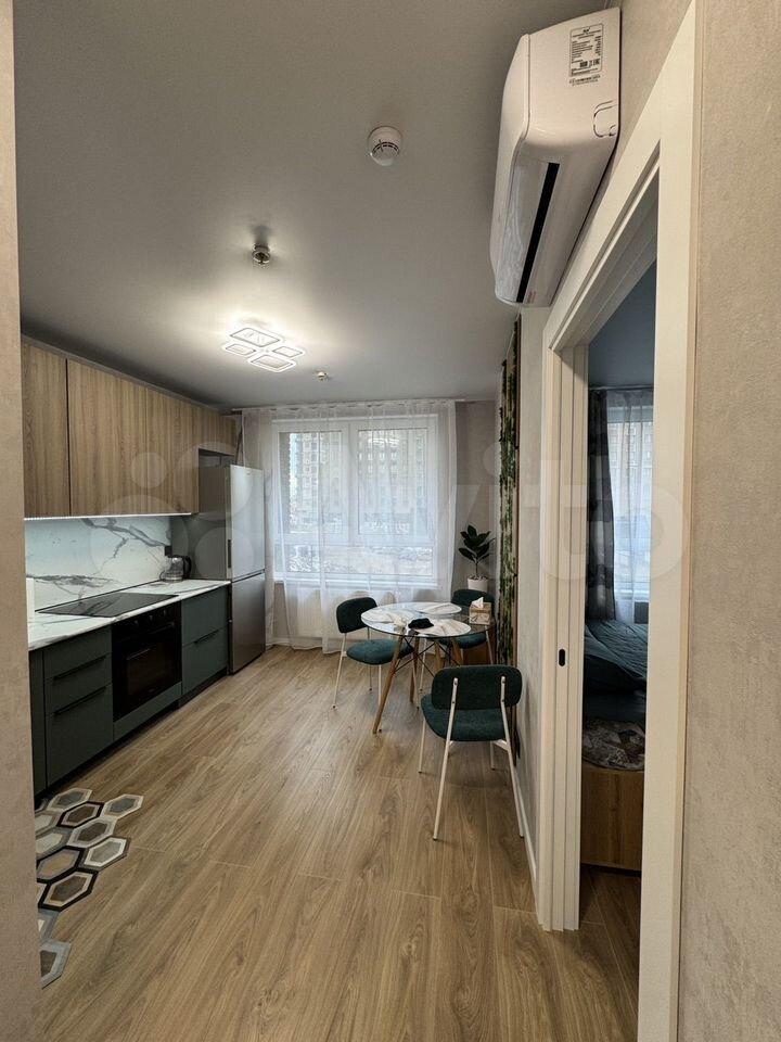 Квартира после ремонта . В квартире есть всё необходимое для комфортного проживания: кондиционер, холодильник, телевизор и стиральная машина. На кухне и в комнате установлена мебель. Санузел совмещенный, оборудован ванной. Также имеется балкон, где можно устроить зону отдыха или хранить сезонные вещи.