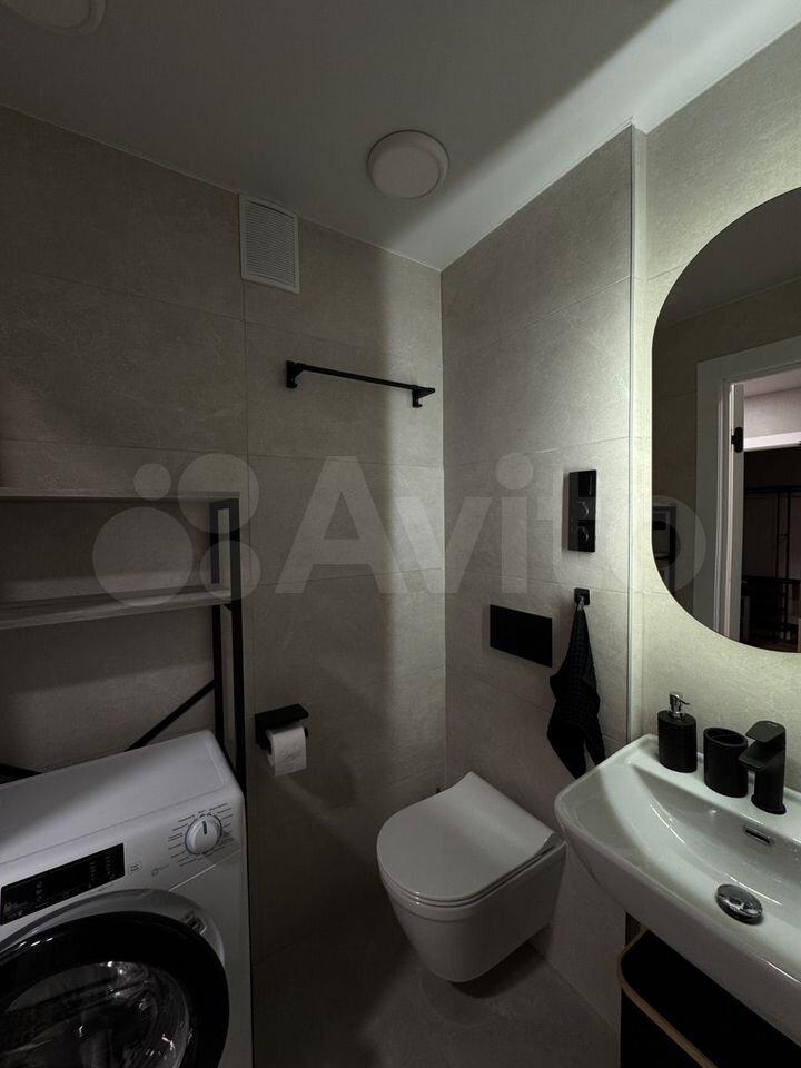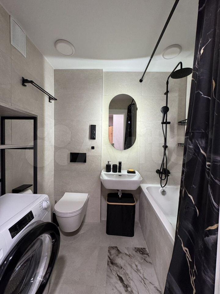 В квартире есть все необходимое для комфортного проживания: современная мебель в комнате и на кухне, а также полный комплект бытовой техники, включая кондиционер, холодильник, посудомоечную и стиральную машины, телевизор. Санузел совмещенный, с ванной.