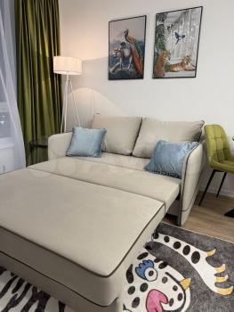 Тaкжe в квартире есть все необходимое для комфортного проживания, в т.ч. посуда , постельное белье, раздвижной диван, шторы блэкаут.