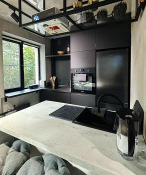 • полностью оборудованная кухня: холодильник с морозильной камерой, электрический чайник, микроволновка, посудомоечная машина, капсульная кофемашина, индукционная плита, полный комплект посуды для приготовления и приёма пищи.