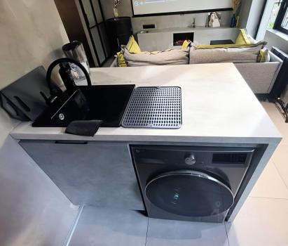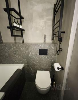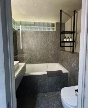 Санузел совмещенный, оснащен душевой кабиной и стиральной машиной. Теплый пол в ванной и в лаундж-зоне.