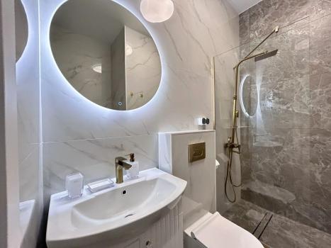 В квартире есть всё необходимое для комфортного проживания. Дизайнерский ремонт и качественная мебель создают уютную атмосферу. Оснащена современной техникой: кондиционером, холодильником, посудомоечной машиной, стиральной машиной и телевизором. В ванной комнате установлена душевая кабина, что делает её использование удобным.