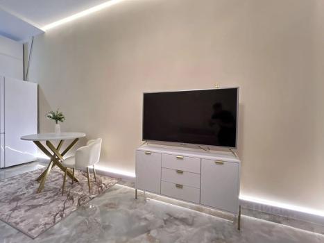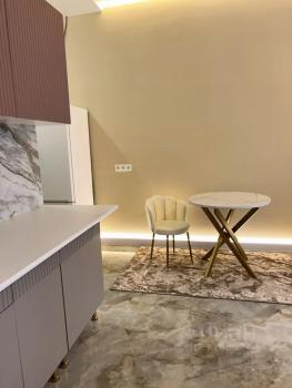 Апартаменты полностью укомплектованы мебелью и новой бытовой техникой премиум-брендов. Установлена встроенная кухня с холодильником, варочной панелью, духовым шкафом, посудомоечной машиной. Удобная двуспальная кровать, диван, обеденная зона и системы хранения.