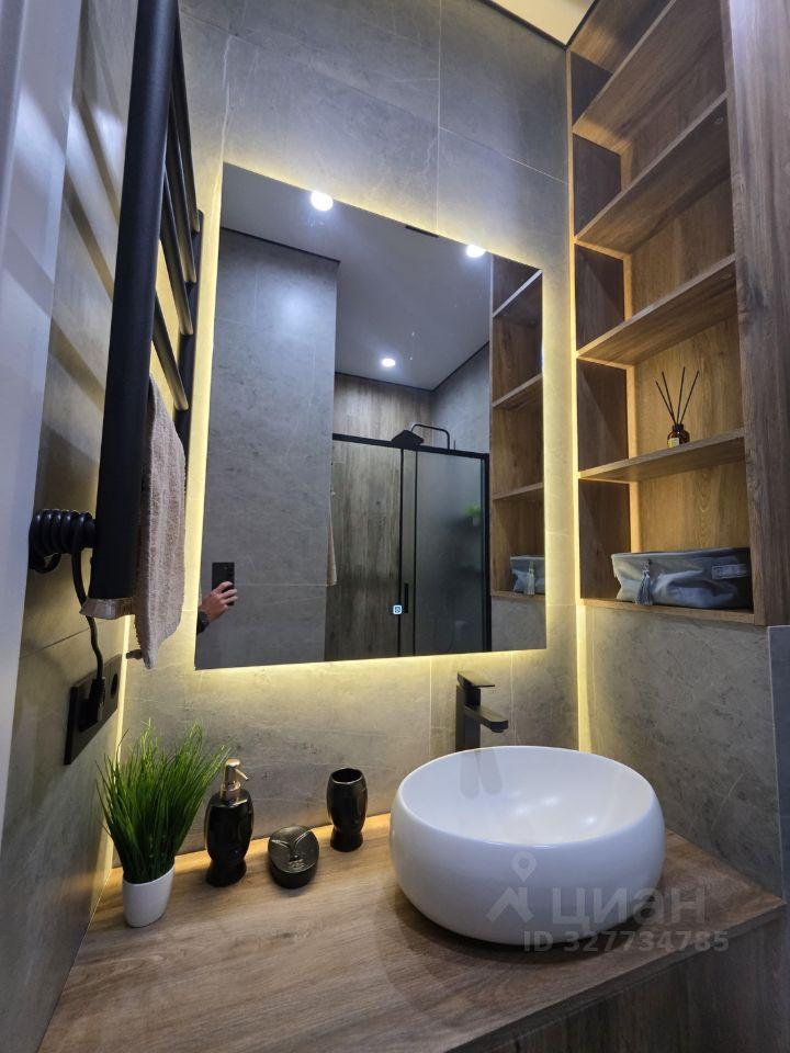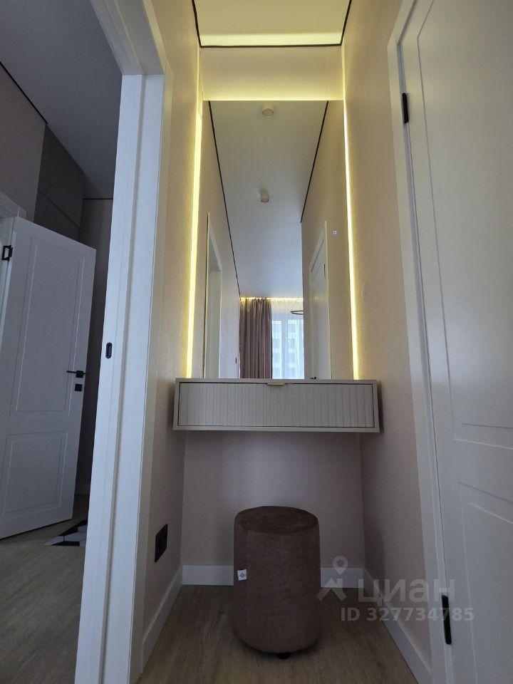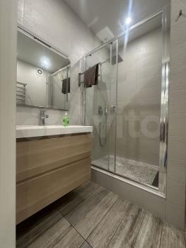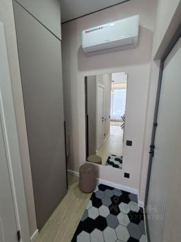 Общая площадь — 35 кв. м, кухня-гостиная 14 кв.м с 2мя окнами, спальня со своей гардеробной, просторный санузел. Полностью меблирована, есть вся необходимая техника. Мебель сделана на заказ.