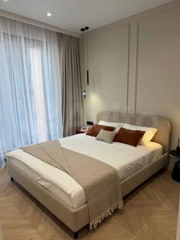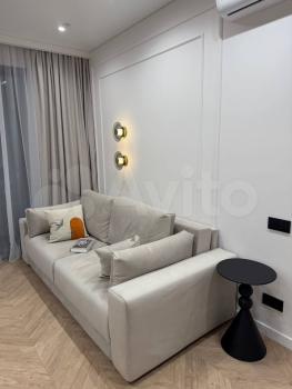 Апартаменты с евроремонтом, поэтому выглядят стильно и современно. В комнате есть вся необходимая мебель для комфортного проживания. (КРОМЕ КРОВАТИ С ФОТО) Кухня оборудована техникой: кондиционер, холодильник, стиральная машина и телевизор — всё, что нужно для комфортной жизни. Ванная комната оснащена душевой кабиной, что делает ее использование более удобным.