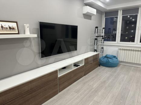 Богатое наполнение квартиры: телевизор 55 с Алисой, вертикальный беспроводной пылесос, кондиционер, стиральная машина, духовой шкаф, индукционная плита, настенная сушилка, полотенцесушитель, набор столовой посуды, посуда для приготовления пищи, столовые приборы, средства для уборки, хорошая сантехника, гигиенический душ, гладильная доска и сушилка.