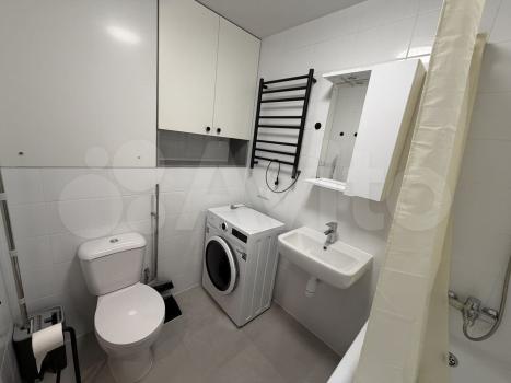 Санузел совмещенный, оснащен ванной и стиральной машиной. Из окон открывается вид на закрытую территорию двора с детской и спортивной площадками. Лоджия застеклена и утеплена, что позволяет использовать ее круглый год.
