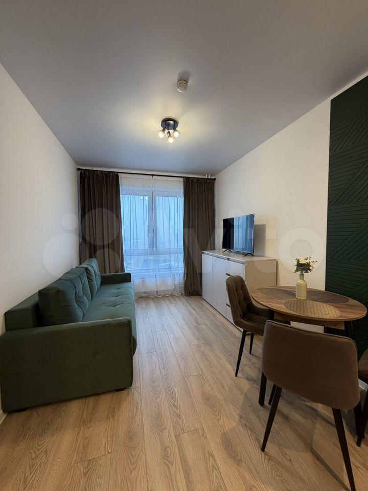 Общая площадь квартиры — 36 м², без учета площади лоджии, кухня занимает 15 м². В квартире выполнен евро ремонт. Просторная гостиная оборудована современной мебелью и техникой, включая холодильник и телевизор. В спальне установлен удобный шкаф и кровать.
