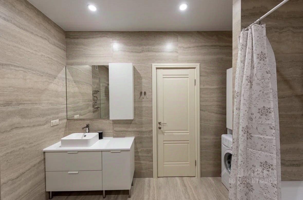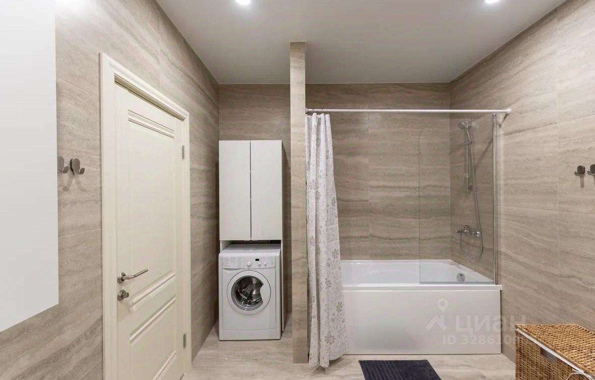 В ванной комнате стиральная машина.