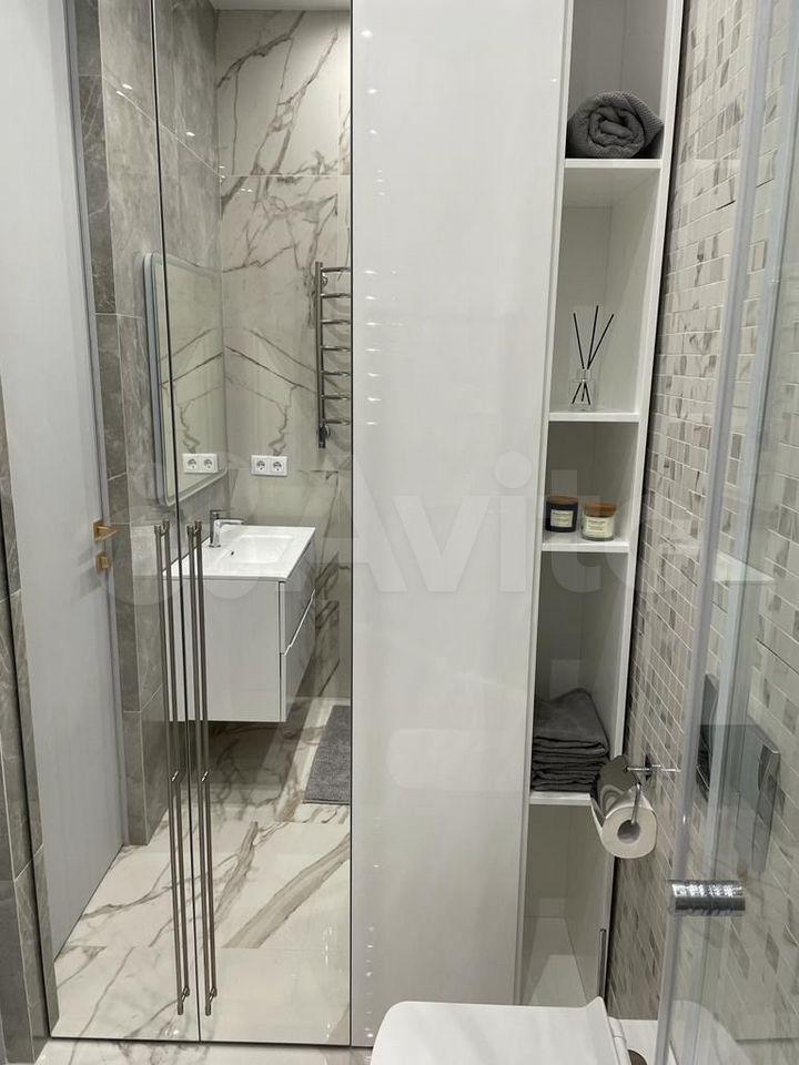 Интерьер продуман до мелочей: светлые современные оттенки, качественные материалы и грамотная эргономика пространства. Ремонт делался для себя, поэтому использованы только надежные и дорогие решения. Панорамное остекление наполняет квартиру естественным светом и создает ощущение пространства, а просторная лоджия станет комфортным местом для отдыха.