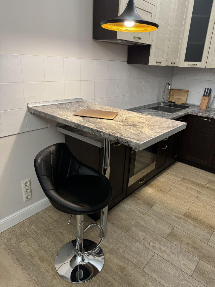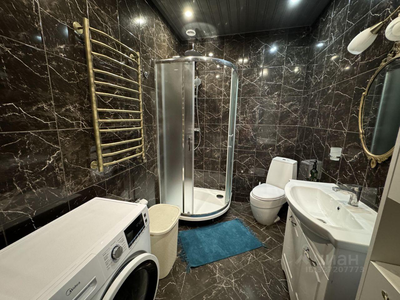 Кухня площадью 13 м² оборудована современной техникой, включая стиральную машину. Ванная комната совмещенная, оформлена стильными материалами.