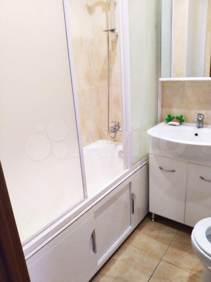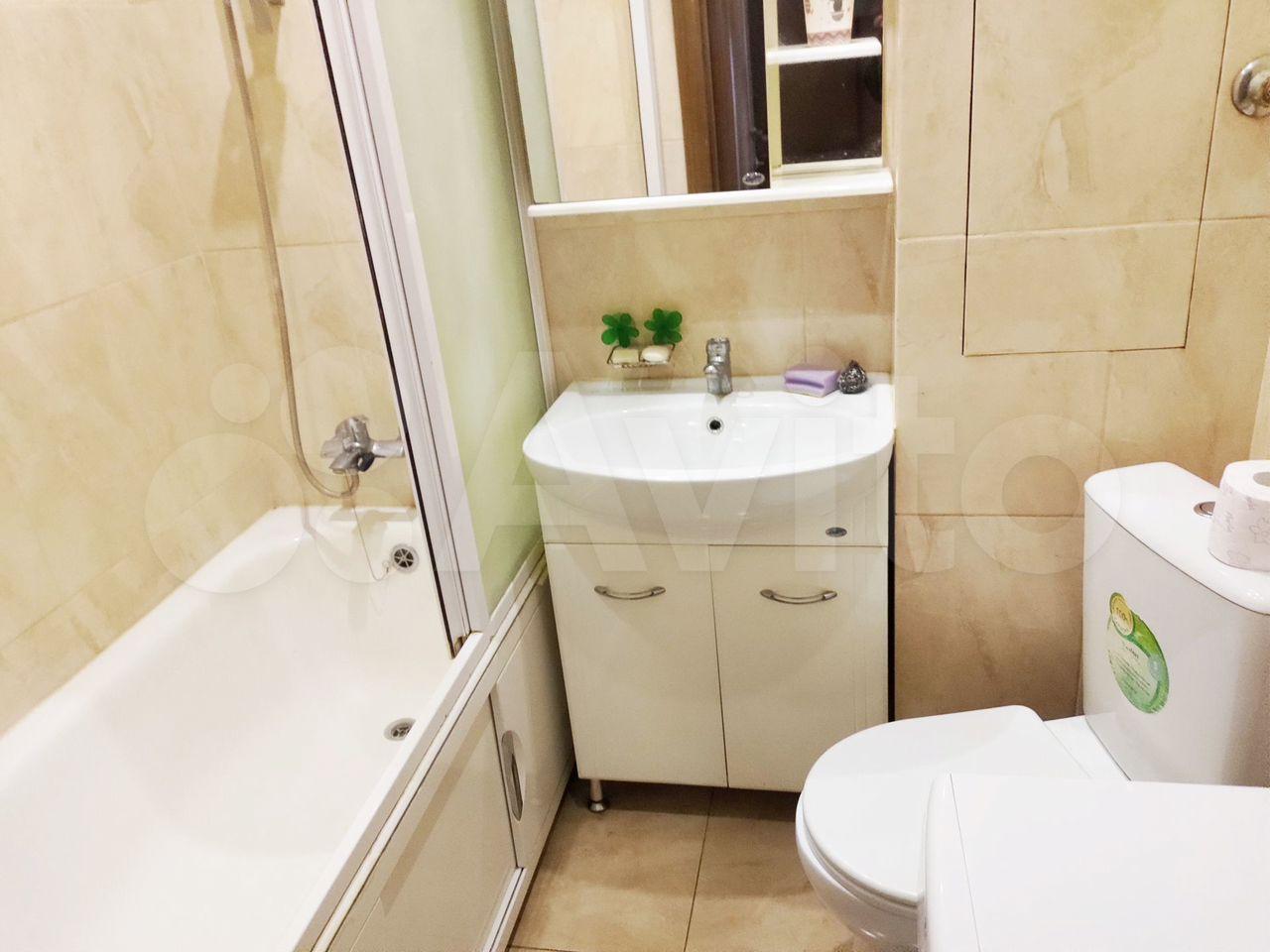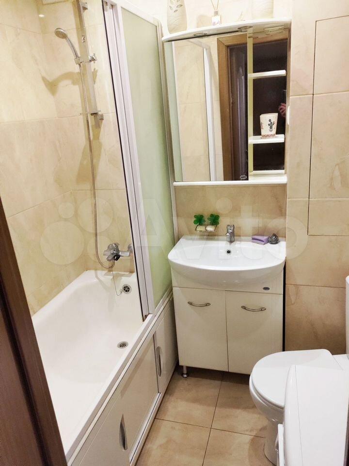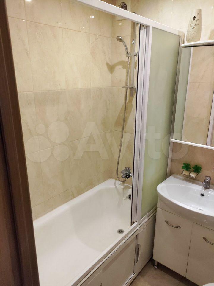 В санузле тёплый пол, душевая кабина, бойлер, стиральная машина с сушкой.
