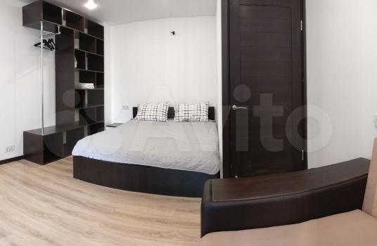 Спальная с гардеробной комнатой и выходом на лоджию; кухня совмещенная с гостиной (полноценный двуспальный диван); совмещенный санузел; прихожая с шкафом-купе.
