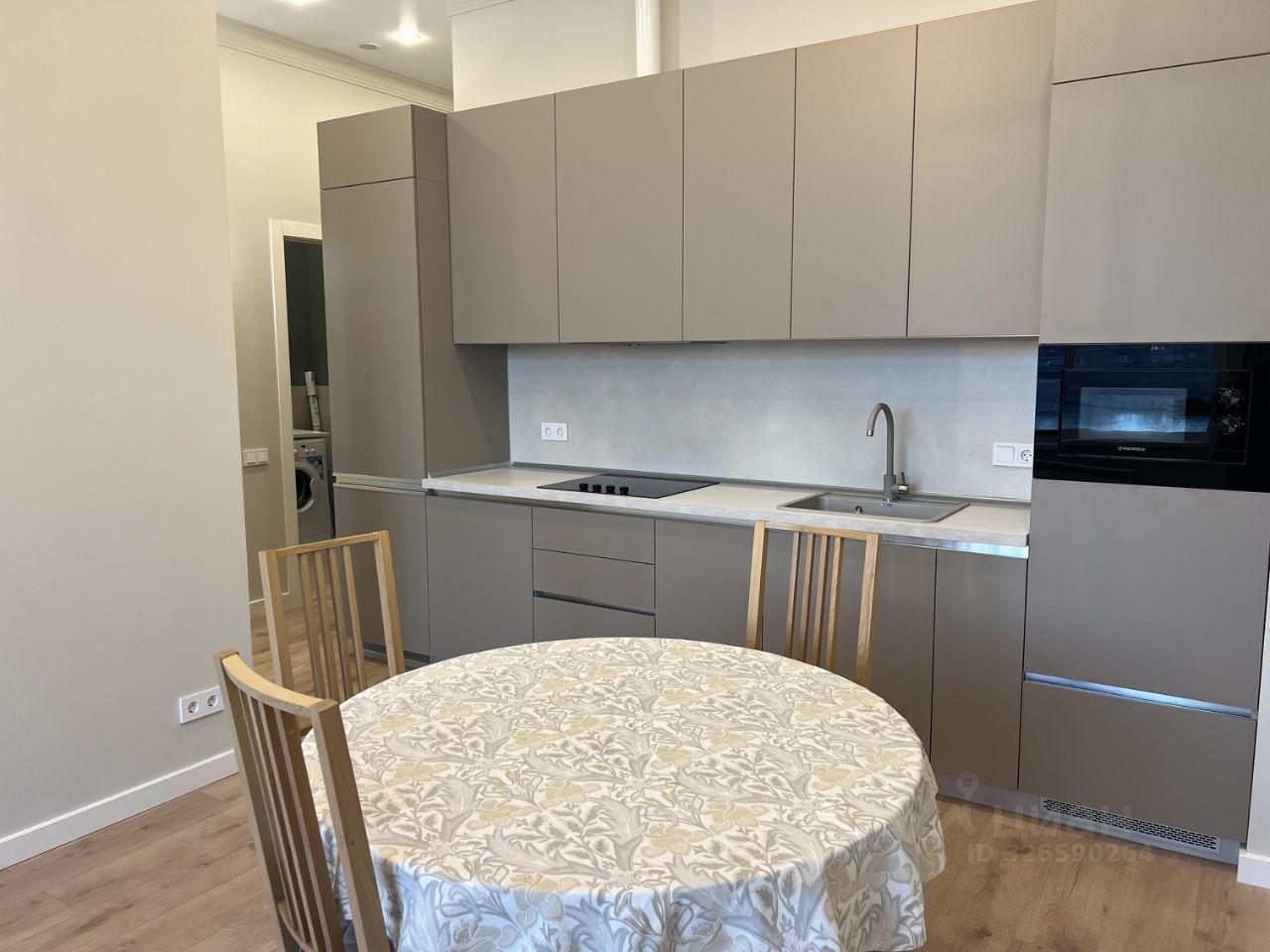 Квартира привлекает внимание дизайнерским ремонтом и продуманной планировкой. Большая кухня площадью 16 кв. м оснащена всей необходимой мебелью и техникой: здесь есть холодильник, посудомоечная и стиральная машины. В комнате также установлена комфортная мебель. В ванной комнате есть ванна, что добавляет удобства для проживания.