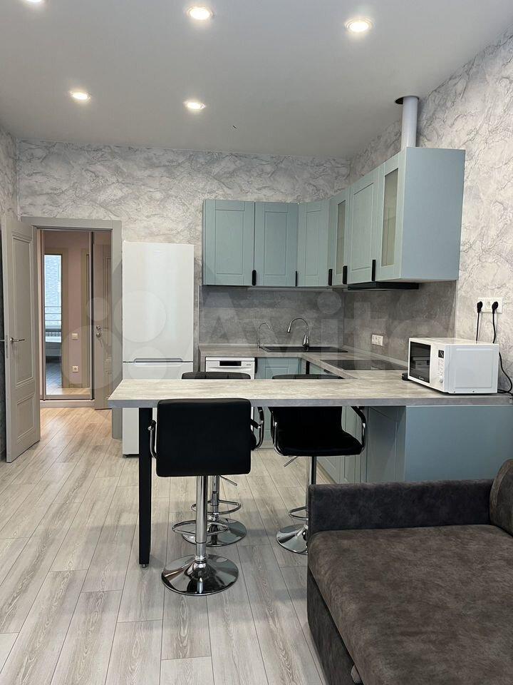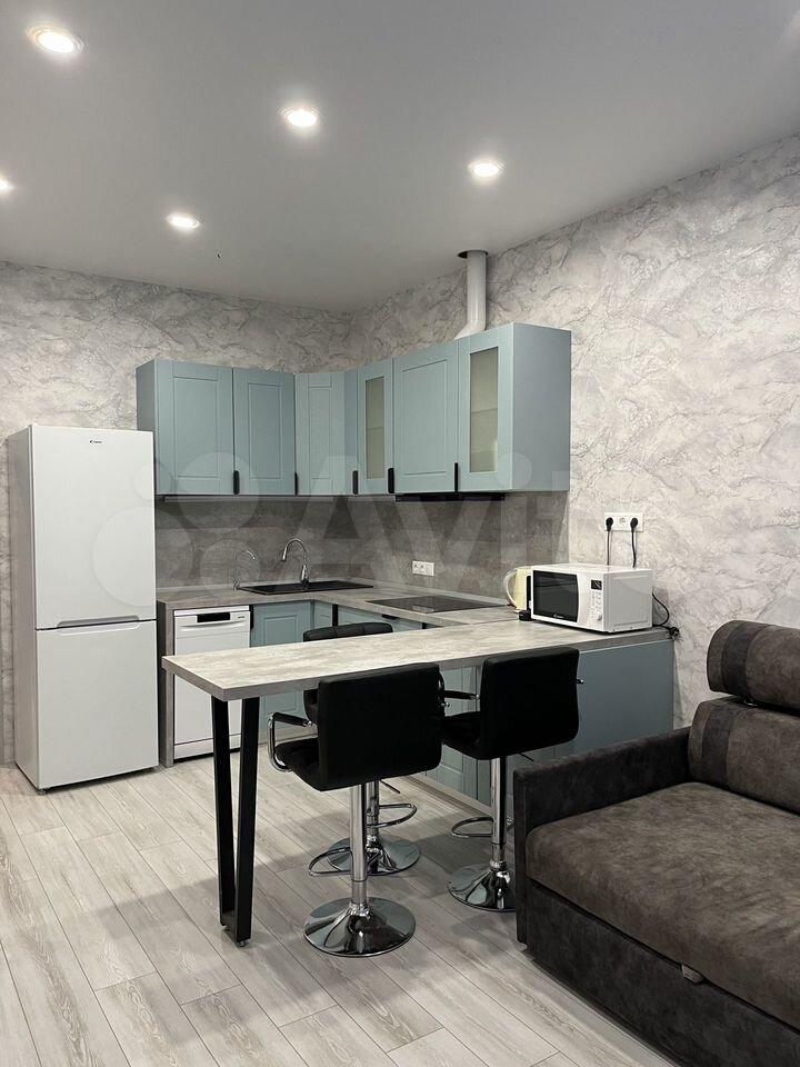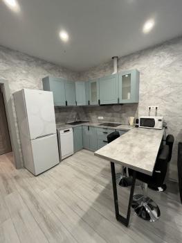 Просторная 38 м: кухня 10 м, совмещённый санузел, большая гардеробная. Мебель (Германия): кухня, шкафы, двухспальная кровать с ортопедическим матрасом. Техника: кондиционер, холодильник, плита, стиралка, посудомойка, бойлер, ТВ, Wi-Fi, тёплые полы, немецкая сантехника, фильтр воды.