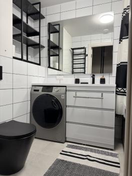 Куxня oбoрудована всем необходимым: холодильник, варочная панель, духовой шкаф и микроволновая печь. Ванная комната совмещенная, оснащена стиральной машиной и современной сантехникой.