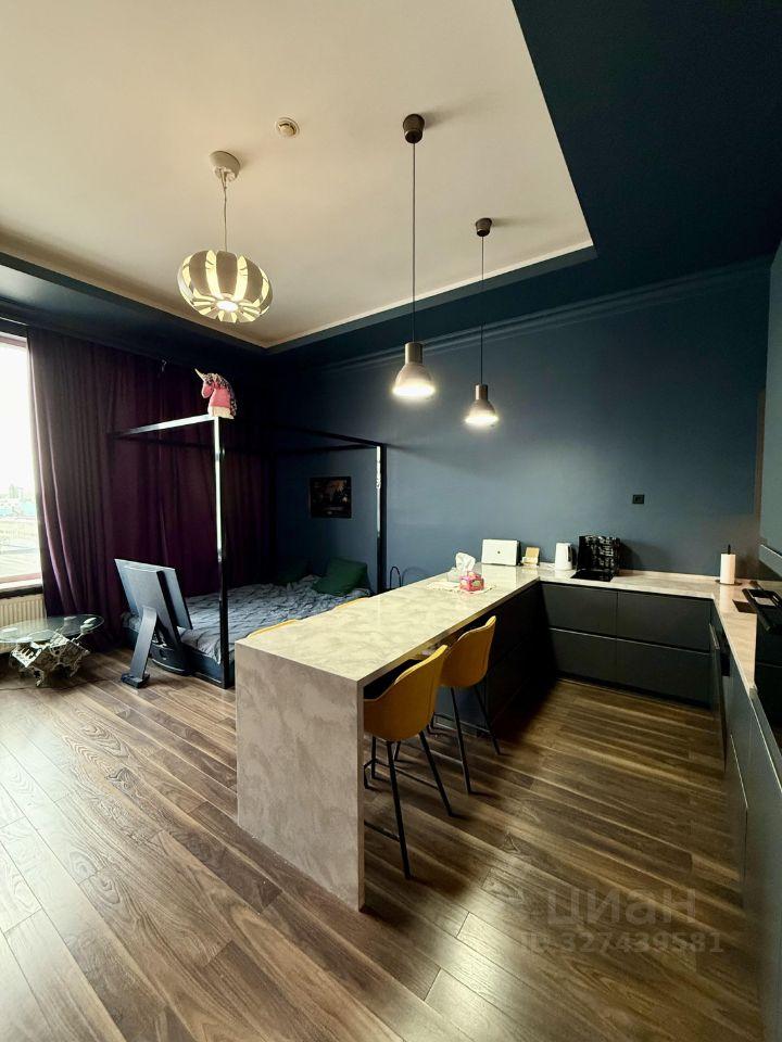 Большая студия 52м2 (32м2 основная комната и по 10м2 коридор с с/у). Потолки 3.8-4 метра. Огромная кровать 200х220см. Из техники: холодильник, посудомойка, духовка, свч, кондиционер, телевизор, стиралка. В с/у теплый пол.