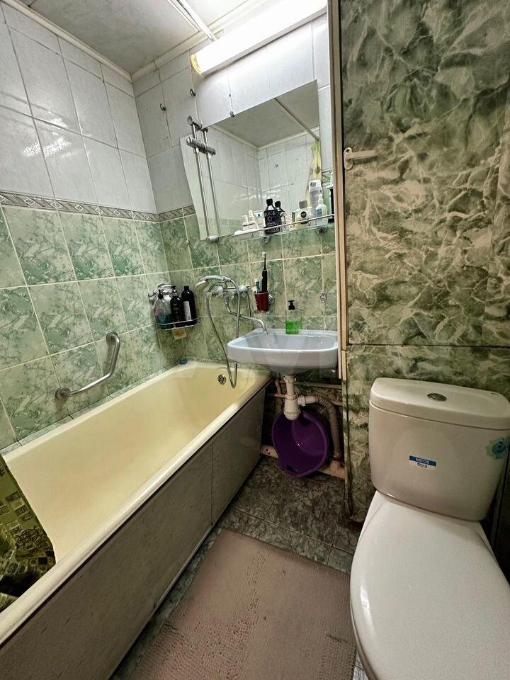 Санузел совмещённый,ванная, стиральная машина. Лоджия застеклённая, вид из окна во двор.
