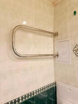 На кухне есть плита, двухкамерный холодильник, микроволновка, чайник, посудомоечная машина и вся необходимая посуда. В красивой, уютной ванной комнате есть теплый пол, фен для волос.