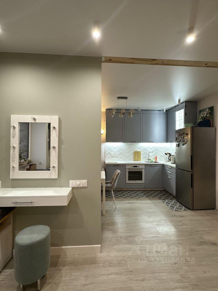 Квартира с евроремонтом, полностью готова для комфортного проживания. В комнате и на кухне есть необходимая мебель. В кухне установлен холодильник. Санузел совмещенный, оборудован ванной. Просторная планировка делает квартиру особенно удобной для одного человека или пары.