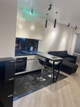 Квартира с дизайнерским ремонтом, в которой есть всё необходимое для комфортного проживания. Просторная кухня площадью 19 кв. м оснащена современной мебелью и всей необходимой техникой: холодильник, посудомоечная машина, стиральная машина. В комнате также есть мебель и кондиционер для создания комфортной температуры в любое время года. Санузел совмещенный, с ванной.