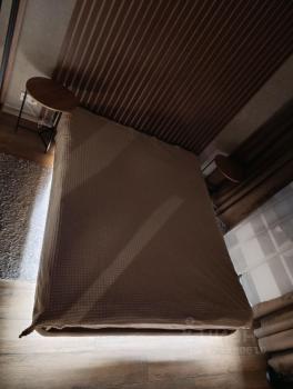 В квартире есть все необходимое: посудомоечная машина и духовой шкаф, индукционная варочная панель, холодильник и стиральная машина, большой раздвижной диван, 50-дюймовый смарт-ТВ, двуспальная кровать с ортопедическим матрасом и подъемным механизмом с местом для дополнительного хранения вещей, а также большой 4-х створчатый шкаф и шкаф-купе. Есть кондиционер для комфортного проживания в любое время года.