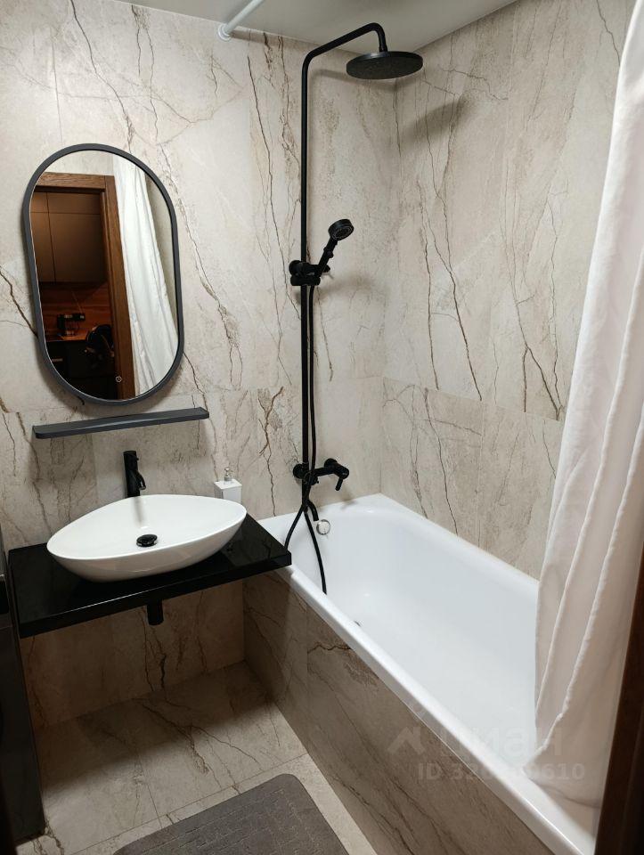 Квартира радует свежим дизайнерским ремонтом и продуманной обстановкой. В комнате и на кухне есть необходимая мебель. Техника включает кондиционер, холодильник, посудомоечную и стиральную машины, а также телевизор. Санузел совмещённый, оборудован ванной. Подключён интернет, поэтому можно легко оставаться на связи.