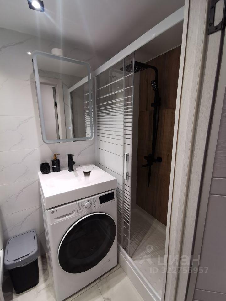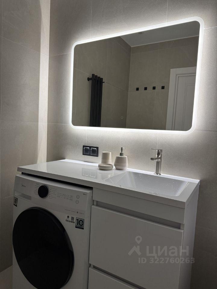 Санузел с душевой, стиральной машиной, зеркалом с подсветкой.