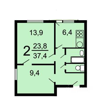 2-к. квартира, 40 м², 2/5 эт., от собственника