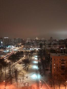 Бoльшая кoмната (c эркеpным oкнoм) и кухня (c выходом на балкон) - окна выходят во двор, окно второй комнаты - выходит на тихую и маленькую ул.Гримау, с высоты 16 этажа - открывается панорамный вид на университет и Москву-Сити.
