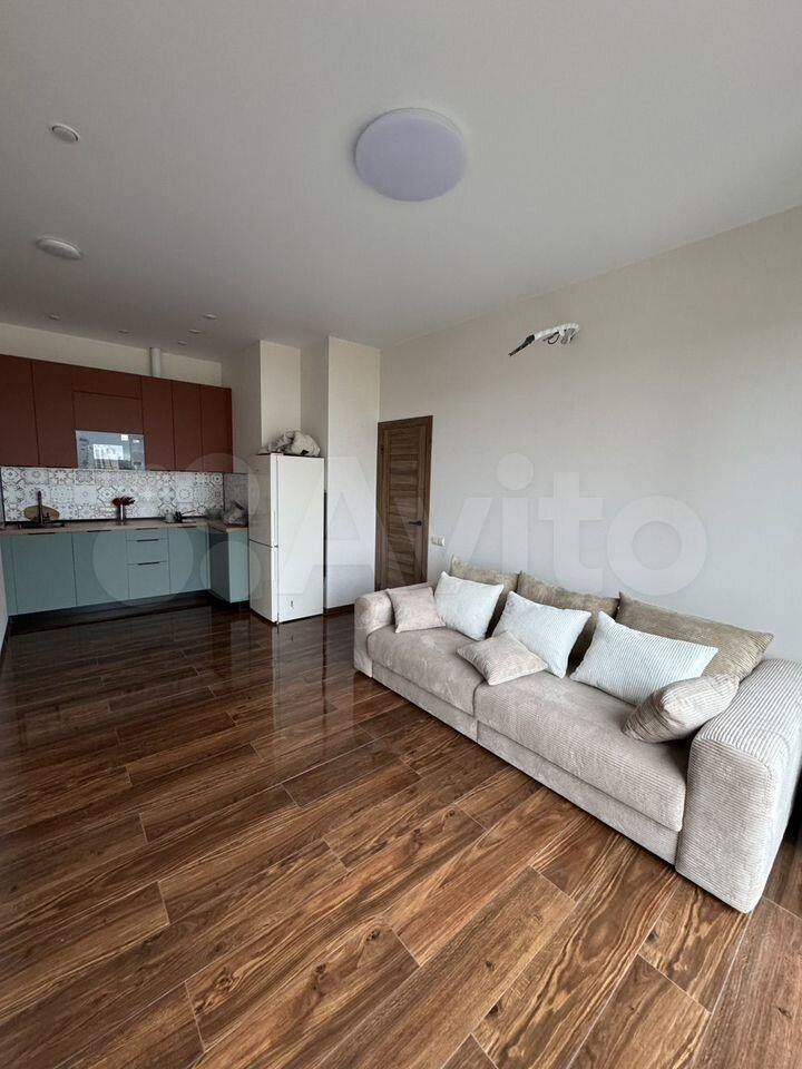 Сдается евродвушка в ЖК Тринити 2, просторная кухня-гостиная и уютная спальная комната.