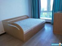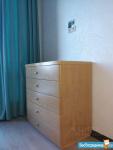 В спальне - кровать с ортопедическим матрасом и комод Toris из массива дуба и большой шкаф-купе с двухуровневыми вешалами. В гостиной раскладной диван Bobox и красивая обеденная группа (пара стульев и стол) из массива, телевизор.